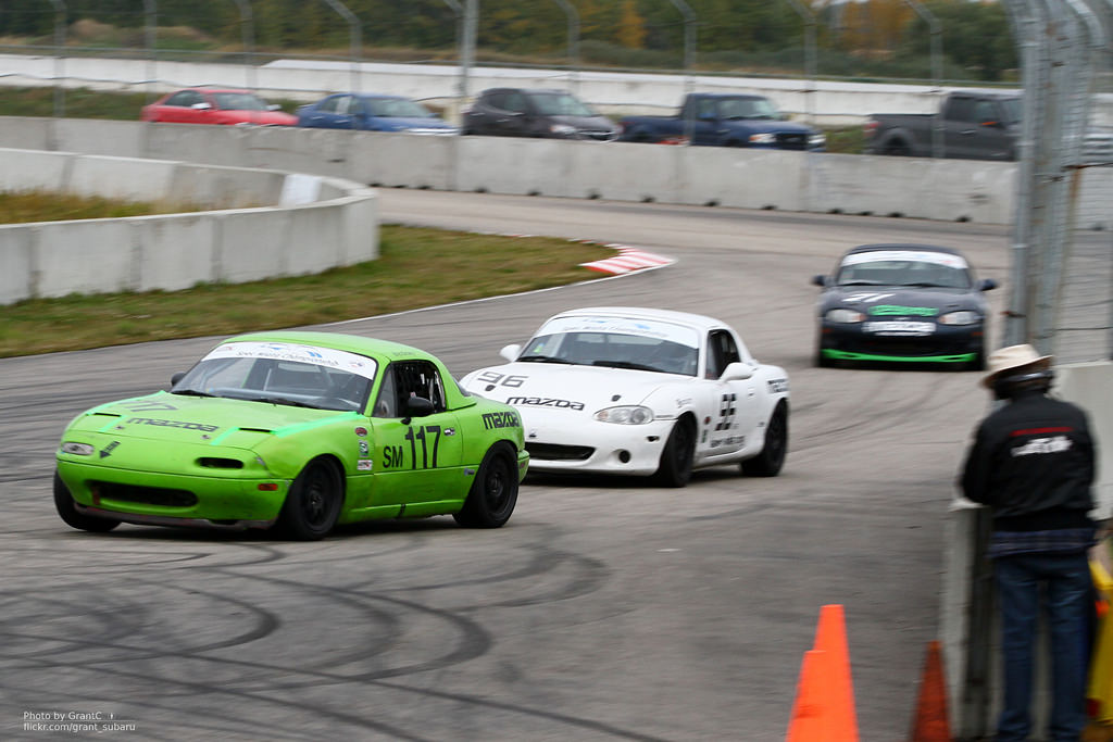 Of course, one-make race series are nothing new. But it comes down to money; there are thousands of brilliant drivers out there who can’t afford to get themselves into Formula Ford or Carrera Cup. However, you could probably run a whole season in Spec Miata for less than the cost of a single weekend in a modern open-wheeler. Therefore, the spread of talent in Spec Miata is much wider. All the guy down in 15th place needs to get on the podium is a few lucky breaks. That’s often not the case in expensive championships like Carrera Cup.