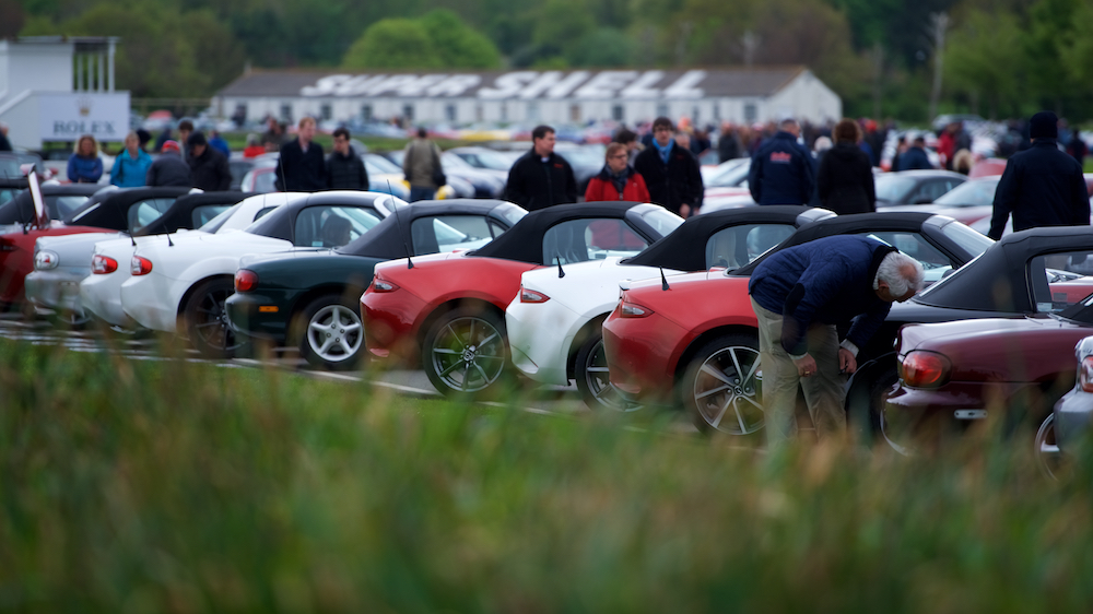The highlight of the day came when the parade laps took place, with almost all of the MX-5s lining up for several laps of the circuit. Parked nose to tail and three wide, the gathered MX-5s stretched for over half of the 2.3-mile course.