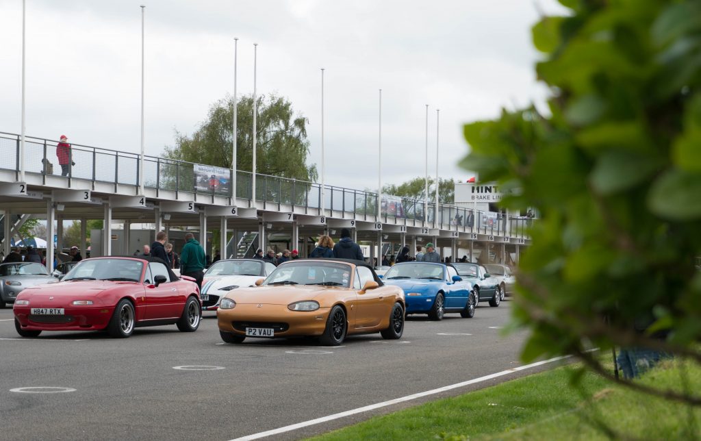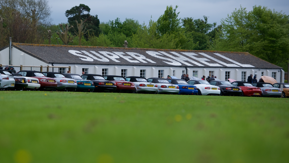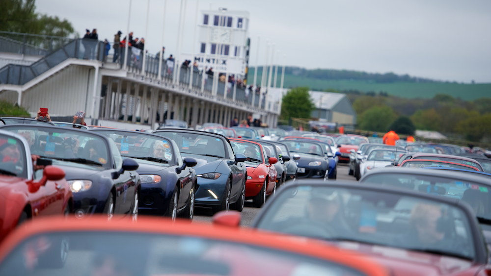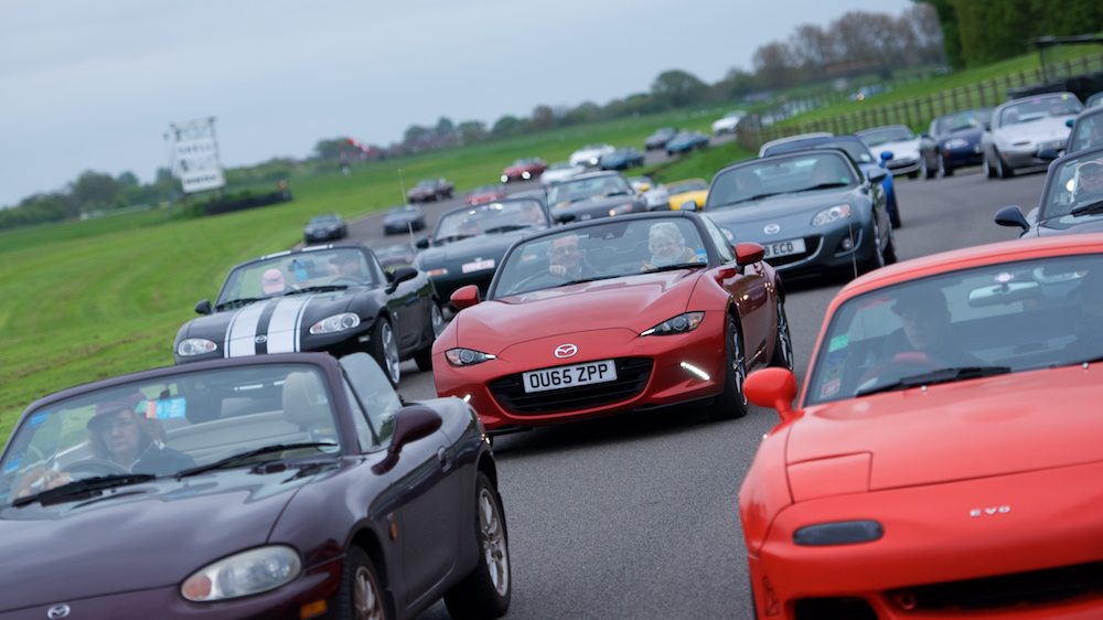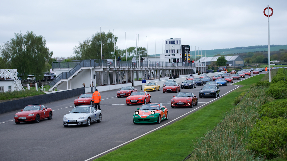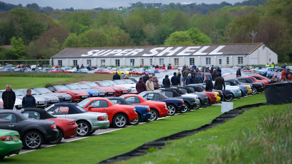 On pit straight, a full grid of preened and polished MX-5s lined up into the starting boxes, as if waiting to commence the ultimate club race.