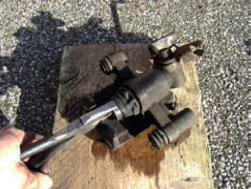 This month’s article is from the How-To guide from the December 2014 Soft Top Hardtop, available to club members HERE. It’s a follow up from the technical demonstration at the Club’s National Rally at the Heritage Motor Centre. Those of you that saw the afternoon session will be aware of the problem I experienced retracting the rear brake caliper piston. For those of you who weren’t there, the usual method of winding the piston back into the caliper body using the 4mm hex adjuster didn’t work and I had to assist the piston’s retraction with a pair of water pump pliers. I have stripped down the offending caliper to ascertain what caused the piston to fail to retract.