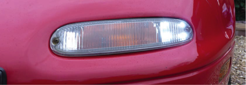 After this rant you might consider me totally “anti” this feature but a few journeys in the murky mornings and evenings earlier this year made me think again. Whilst the dim-dip feature of the Mark 1 MX-5 is fine on poor visibility days, it does seem a shame to drive around all the time with the headlamps up. This started me thinking and the search for a possible solution that did not look like an afterthought. There are hundreds of variants of aftermarket LED running lights available but none that would look integrated to the smooth front end of the MX-5.