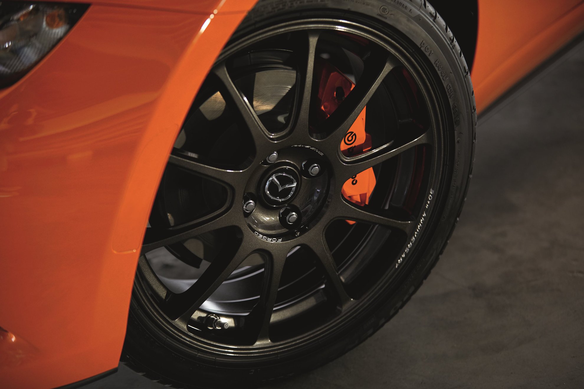 After 30 years it is only right that the car should carry an air of reverence and deep-seated reflection for its forebears. The Racing Orange skin harks back to the loopy 787B Rotary powered Le Mans racer, as well as the tribute MK1 car that came out of nowhere. The 17-inch multi-spoke wheels are also modelled on the RAYS ZE40 wheels found on the MX-5 cup car, embracing the 30 years of being fun on-track.