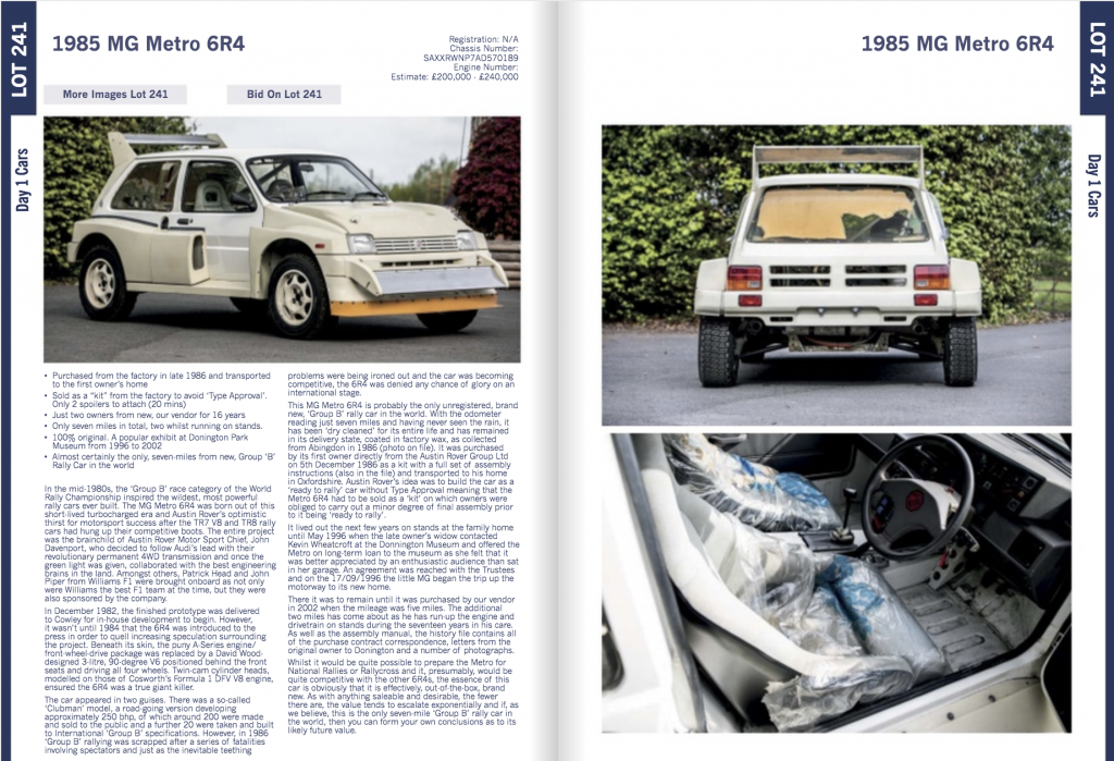 Highlights include a matching numbers 1954 Mercedes-Benz 300SL Gullwing (£850,000-1,000,000), the first Mini Cooper S to win an international rally (£60-80,000), a 1972 Lola T290 that competed in the 1974 Targa Florio (£110,000-125,000), a no-reserve 1974 BMW 2002 Turbo (£65,000-85,000), an original 1985 MG Metro 6R4 showing just seven miles (£200,000-240,000), among plenty of other temptations.