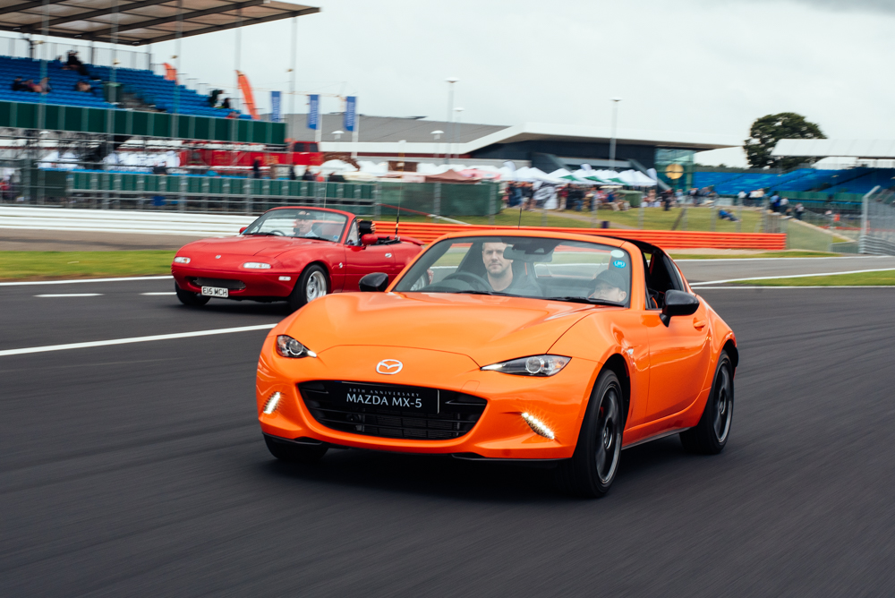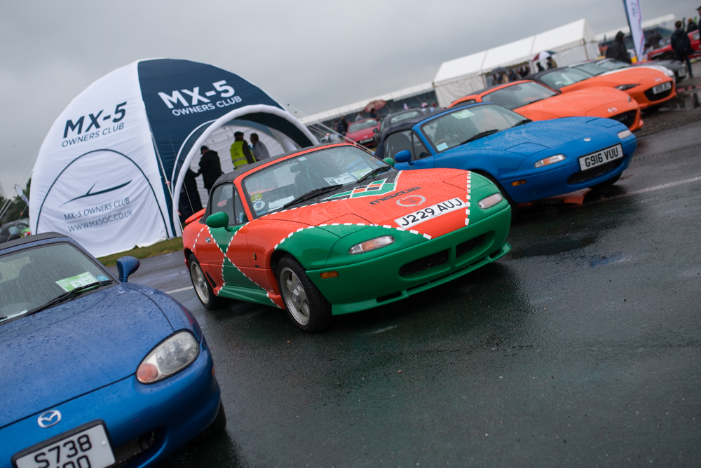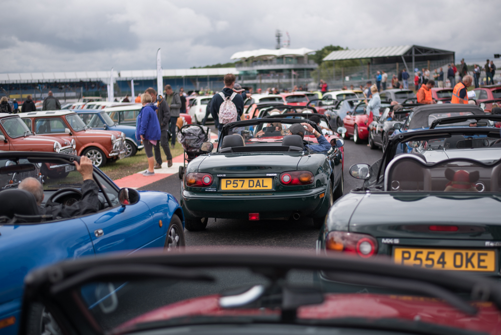 The annual Silverstone Classic is always a highlight for the MX-5 Owners Club. Hundreds of members bring their MX-5s along to one of the world’s biggest historic race meetings for three days of automotive action, with prime parking and exclusive access. This year we celebrated both 25 years of the MX-5 Owners Club and 30 years of the Mazda MX-5 with a special parade lap of the full Grand Prix circuit on the Saturday evening, where hundreds of members got out on track for a few ‘gentle’ laps of the famous course.