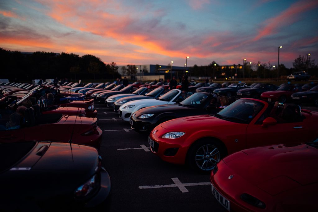 On the Saturday night we held a Drive-In movie night at the British Motor Museum, with hundreds of MX-5s gathering to watch the original Italian Job, itself celebrating its 50th birthday. We were blessed with a golden sunset as the sky morphed to glorious shades pinks and blues as darkness descended, and attendees parked roof-down under a cloudless sky while they watched the classic play out.