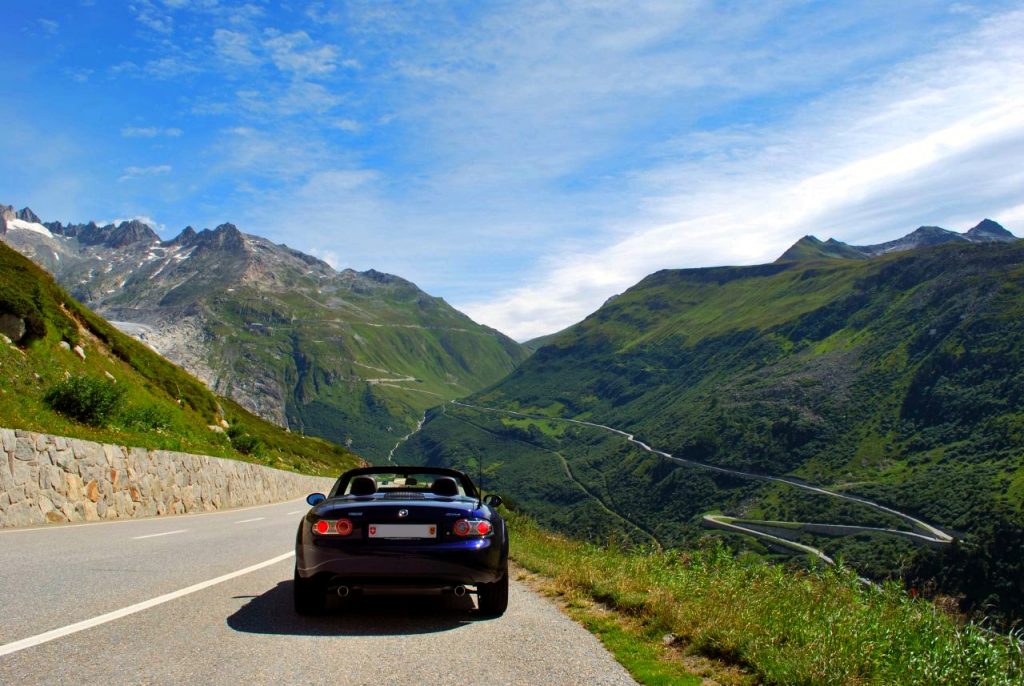 The Bernina Gran Turismo hillclimb was held a few weeks ago, and ever since seeing the images on Instagram I’ve been dying to drive the Bernina Mountain Pass, so I’d point the MX-5 up that twisty bit of tarmac, with the aim of stopping for a traditional Swiss lunch in the ski resort of St Moritz.