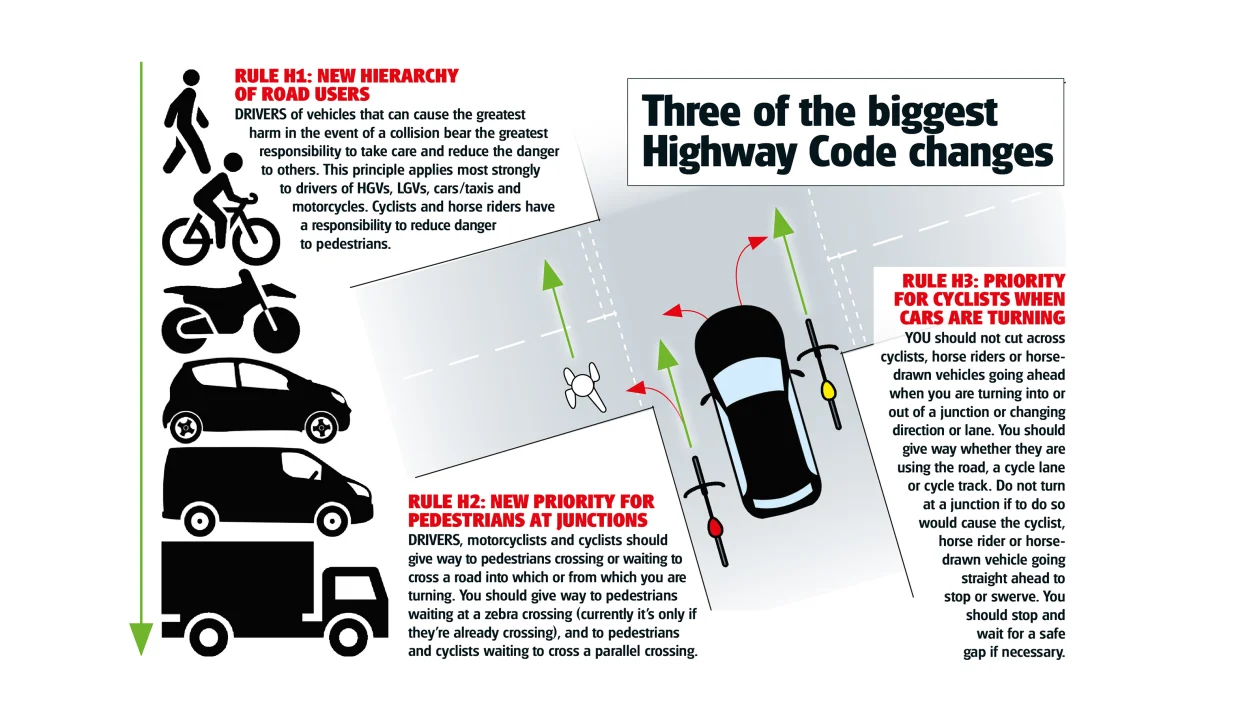 “The encouragement of more ‘active travel’ and a boom in deliveries by people on bicycles has transformed road use to some extent, and the Highway Code needed to be updated to reflect that.