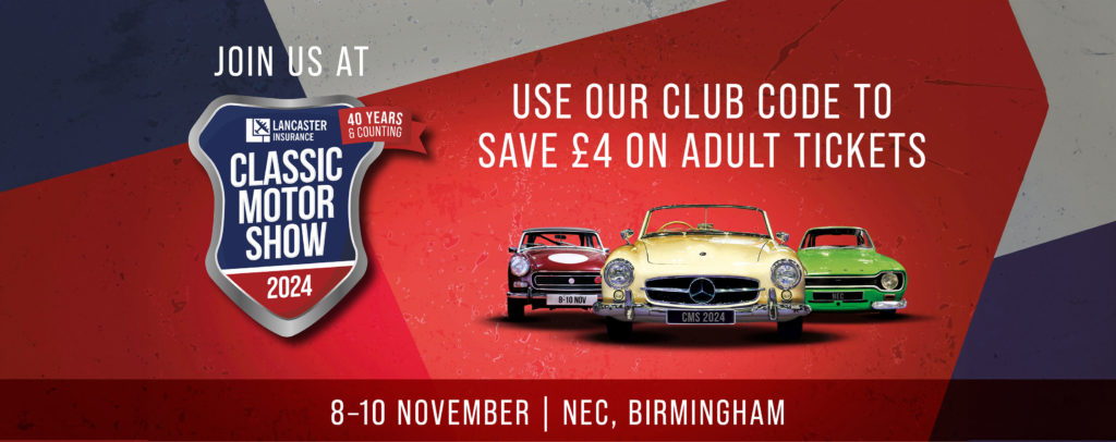 Join the Club on stand 1-650 in Main Hall 1 at the UK’s premier classic motor event, the Lancaster Insurance Classic Motor Show at the NEC Birmingham from Friday 8 – Sunday 10 November.