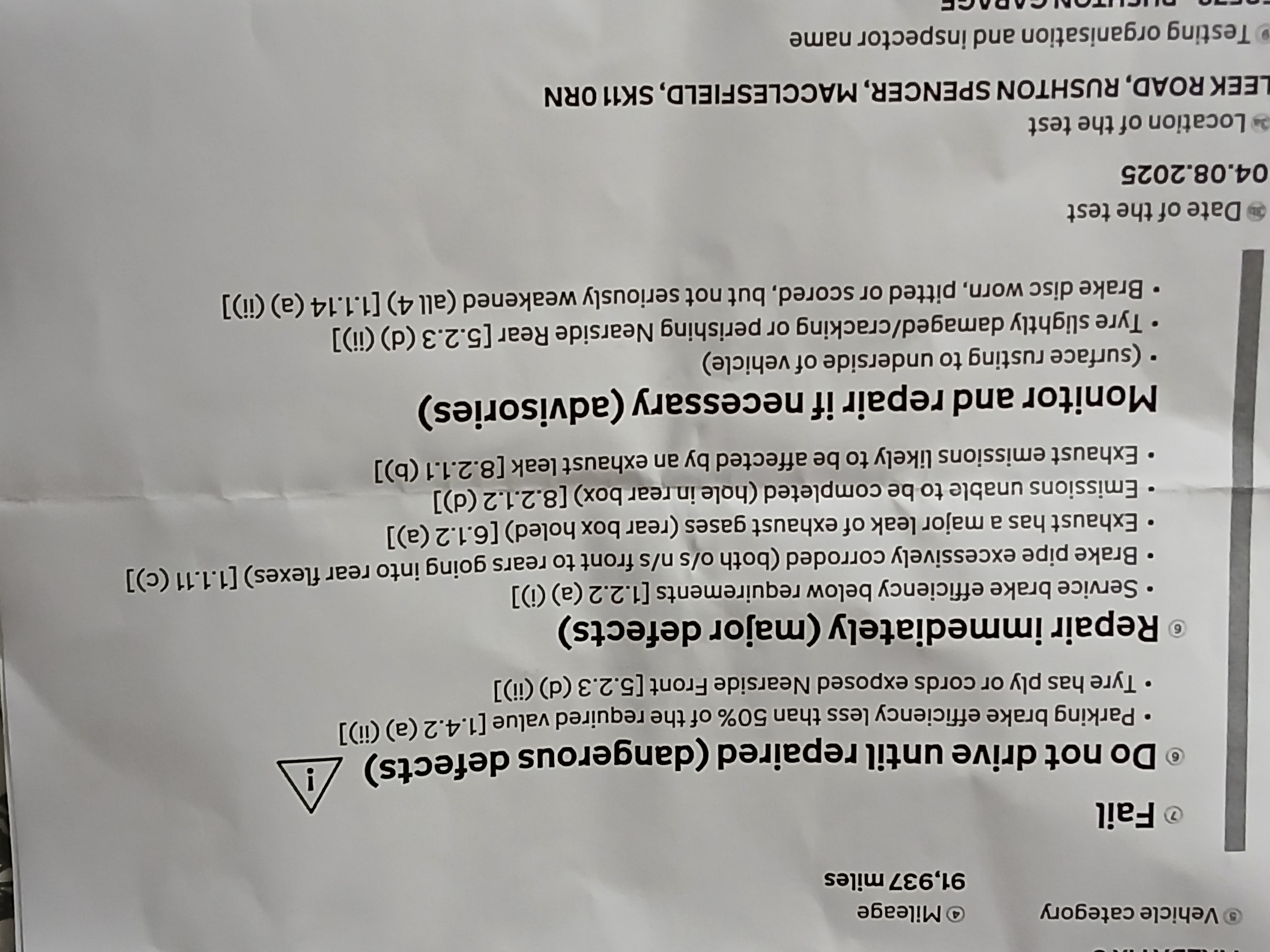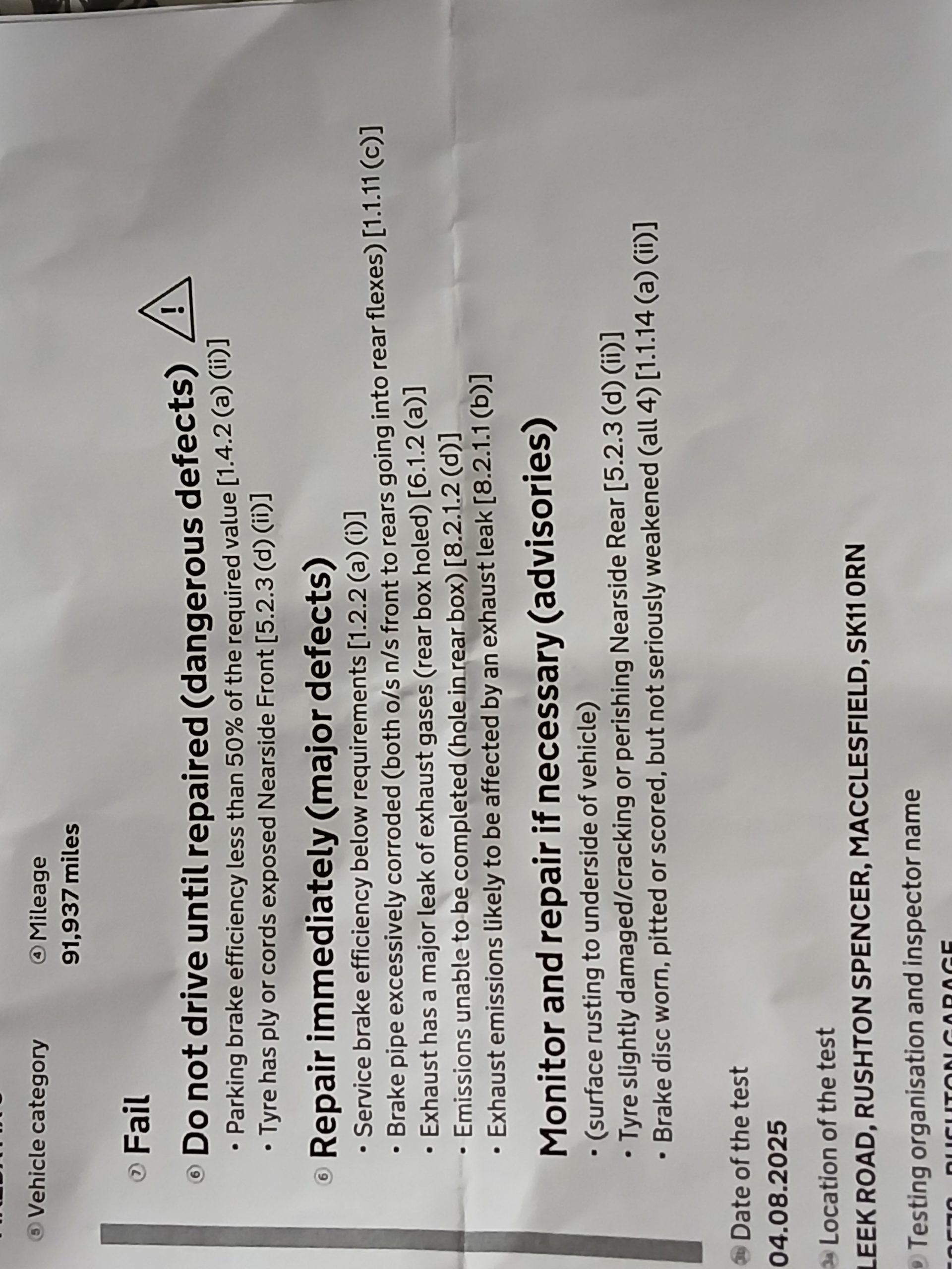 Needs exhaust back box, all brakes discs and pads and two tyres.