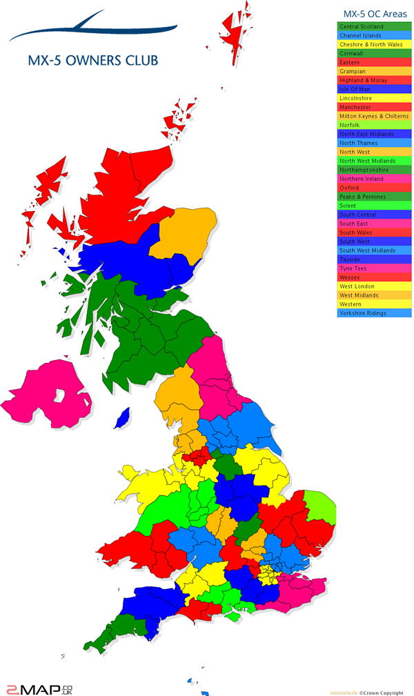 The MX-5 Owners Club is a national organisation and all members are free to attend meetings and events in any of the 35 Areas. Area Co-ordinators organise local meetings, runs, track days, social gatherings and other events. Many Areas publish a regular newsletter for local members, and there are Area websites that provide up-to-date information on forthcoming local, national and international events and feature reports on past get-togethers.